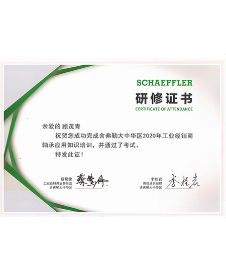 顧茂青2020年舍弗勒培訓(xùn)研修證書