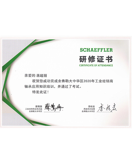 華娟2020年舍弗勒培訓(xùn)研修證書