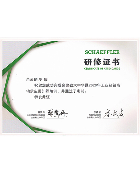 冷康2020年舍弗勒培訓(xùn)研修證書