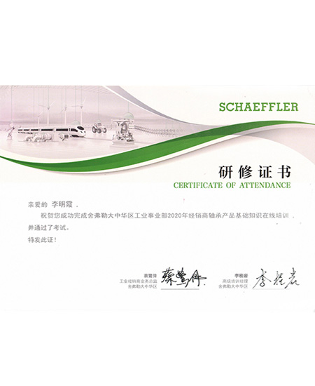 李明霞2020年舍弗勒培訓(xùn)研修證書