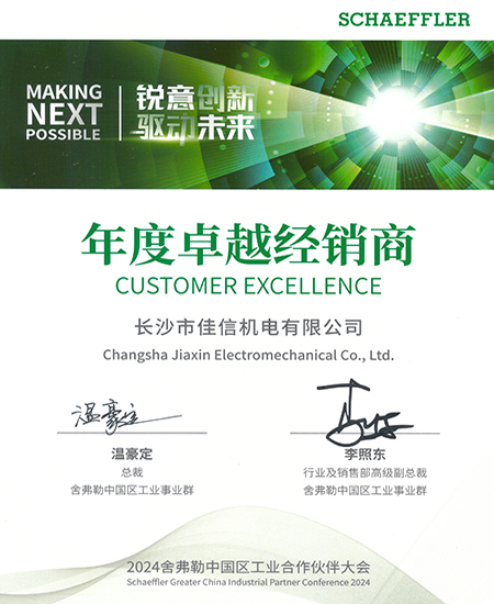 2024年舍弗勒年度卓越經(jīng)銷商證書