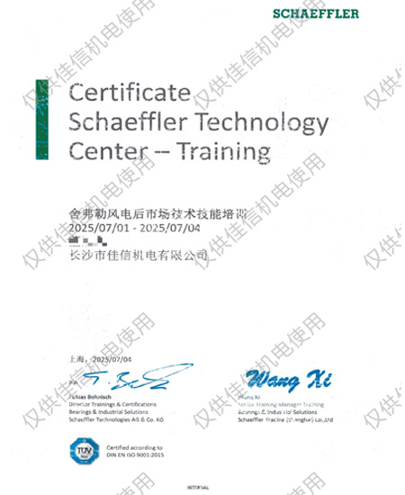 舍佛勒風(fēng)電技術(shù)培訓(xùn)證書